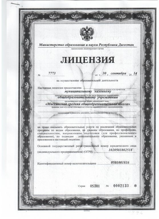 | Полное наименование образовательной организации* | Муниципальное казенное образовательное учреждение "Миссинская средняя общеобразовательная школа" |