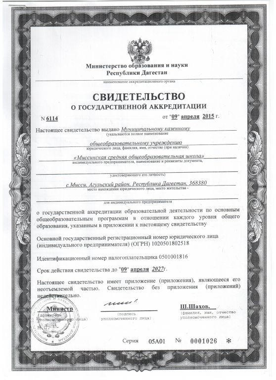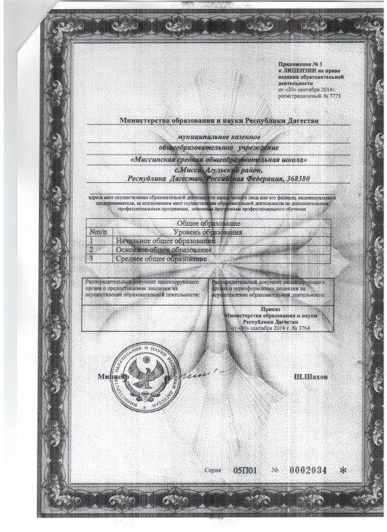 | Адрес местонахождения образовательной организации* | 368380,с.РД,Агульский район,сМисси. |